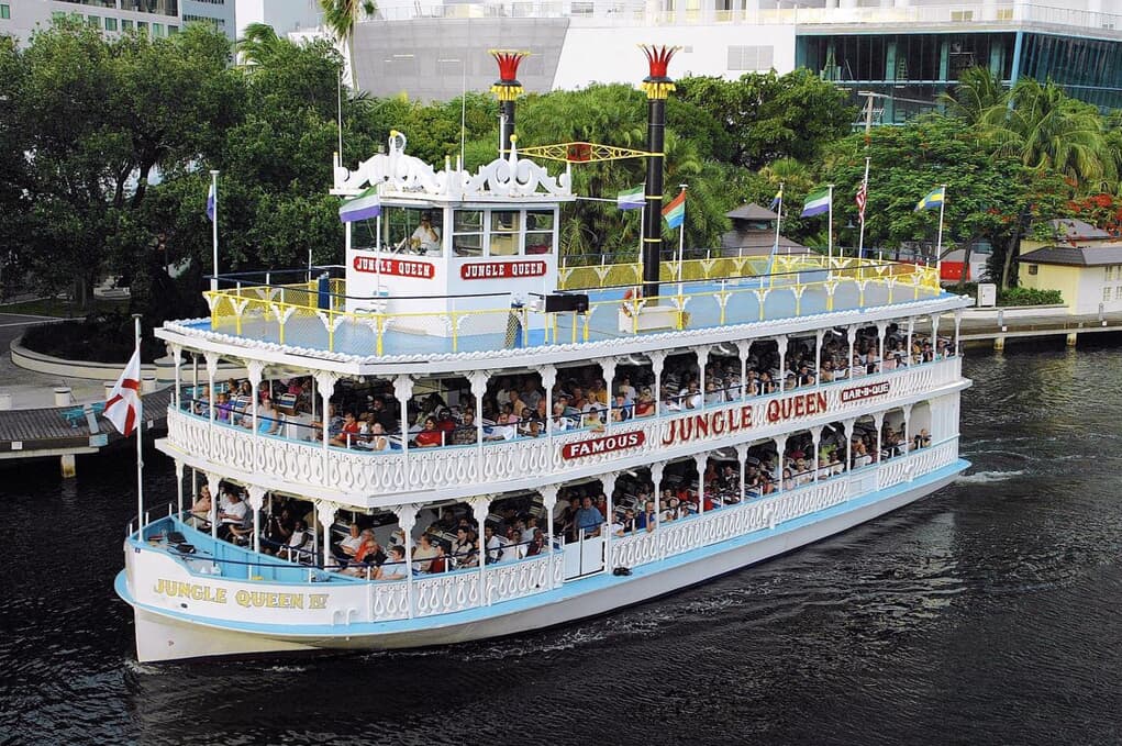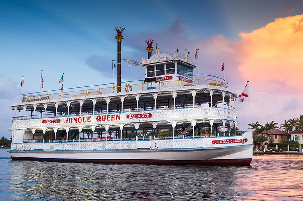 Crucero completamente narrado por la Venecia de América, el New River de Fort Lauderdale, navegando por la Millionaire Row con casas de los ricos y famosos, espectaculares mega yates, y vistas increíbles. Al llegar a la isla tropical, disfrutará de una cena de todo lo que pueda comer con costillas, pollo, camarones pelados y comidos. Entretenimiento en vivo durante la cena, y un divertido espectáculo de variedades después de la cena. Asegúrese de tomarse unos minutos para recorrer la hermosa isla tropical con exuberante vegetación, animales exóticos y deliciosos helados.